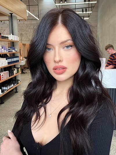 Dark chocolate brunette gives that simple but rich energy. It’s for those who need low-maintenance color in their lives and want to look luxurious at the same time. Dark chocolate brunette has cooler undertones that add depth to your whole fall look. Additionally, the dark chocolate brunette goes perfectly with any skintone.