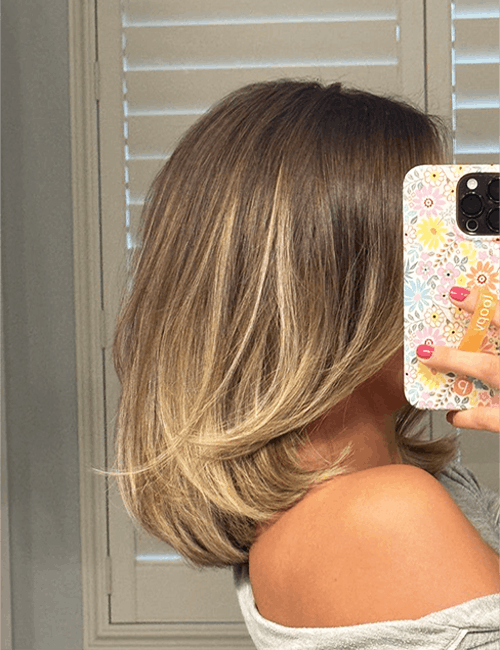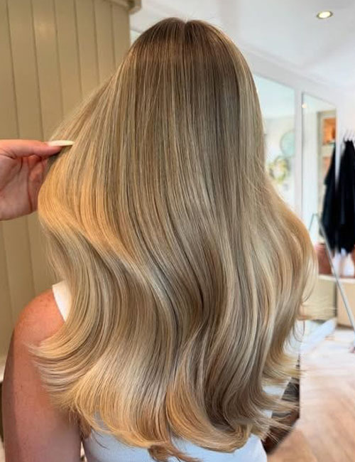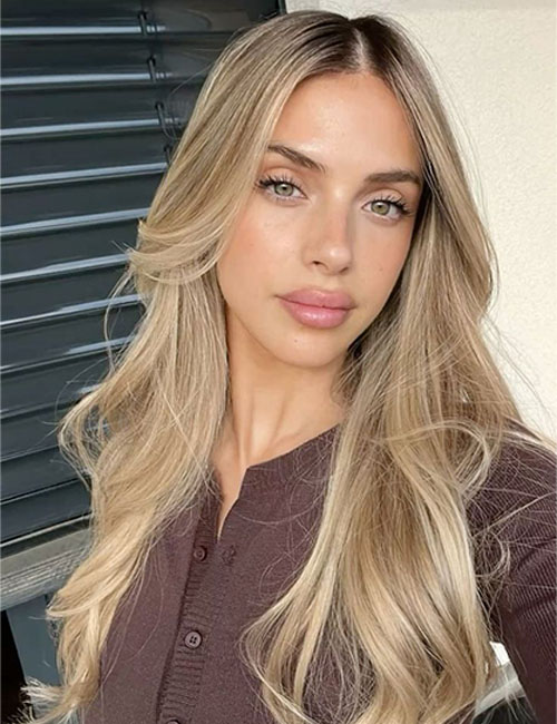 Darker, smudged roots blending into softer blonde lengths. Easier to maintain and much more modern than harsh, all‑over bleach. This look also gives your hair a healthier appearance by reducing damage from frequent lightning at the roots.
